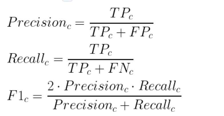 Scorul final Macro-F1 este media scorurilor F1 pentru toate clasele: