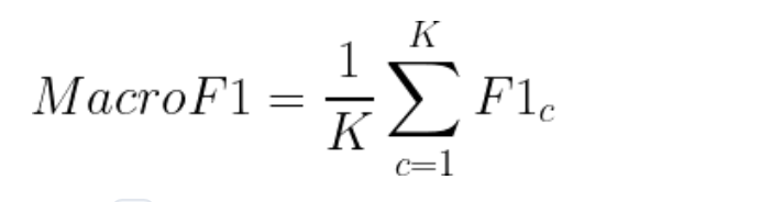 Scorul final Macro-F1 este media scorurilor F1 pentru toate clasele: