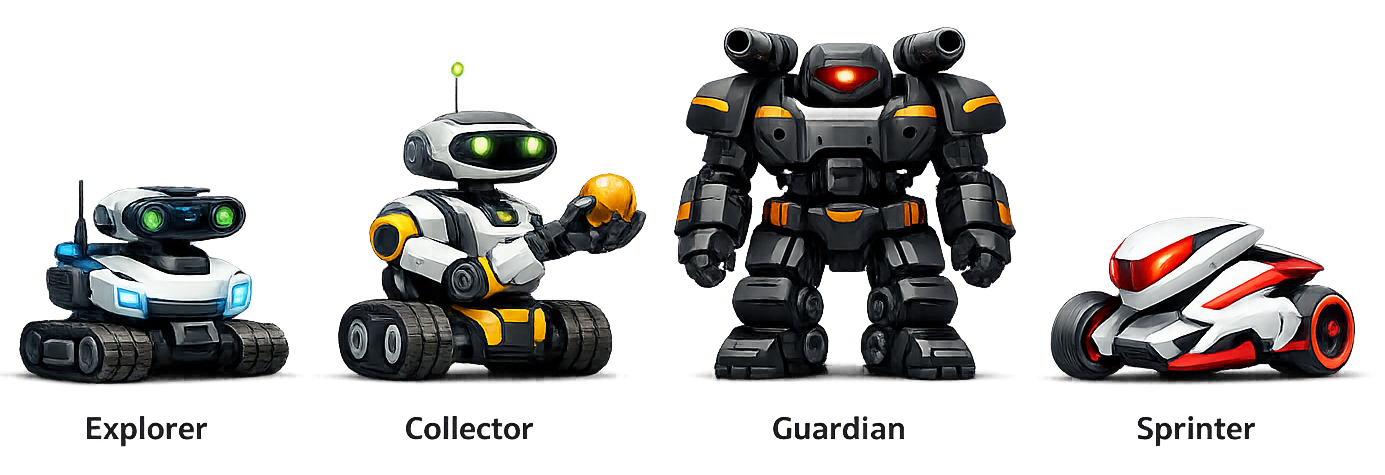 Acestea pot include valori numerice (de exemplu, viteza medie, distanța parcursă, numărul de coliziuni sau obiecte colectate), dar și informații categoriale sau descriptive (precum tipul arenei sau condițiile de mediu). Prin analiza acestor date se pot observa tipare în modul în care roboții se deplasează, explorează spațiul, colectează obiecte sau reacționează la obstacole.